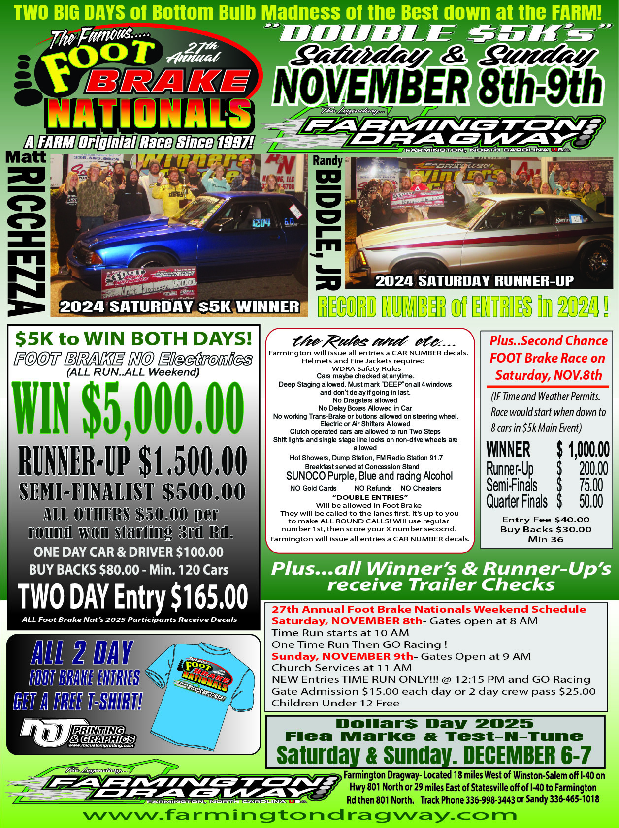 Radio Broadcast on 91.7 FM * Rules and Payouts on Points\Results Page *   * Fuel onsite Purple, Blue and Methanol. Helmets are required to go down the track!