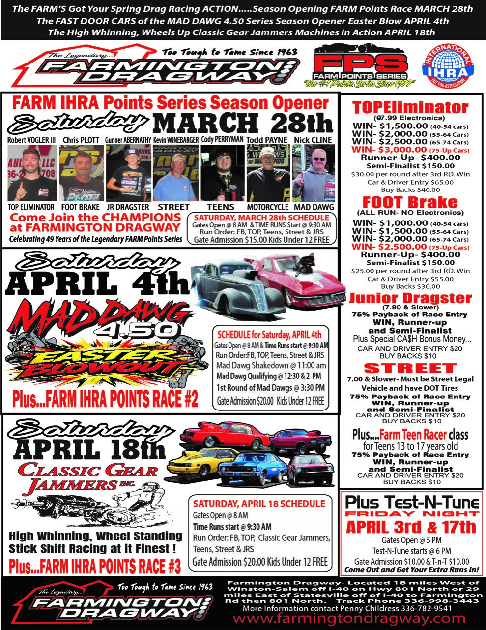 Saturday We have open testntune! Gates open at 10am and track goes hot at 11am. We will run until 4pm… spectators $10 Testers $20